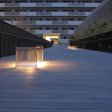 1963年に建てられた団地の建て替え計画である。50年近い年月を経て、建物の老朽化と共に住民の高齢化が著しい。照明計画では、省エネルギーで高齢者にとって安全な夜景をつくることをテーマとした。