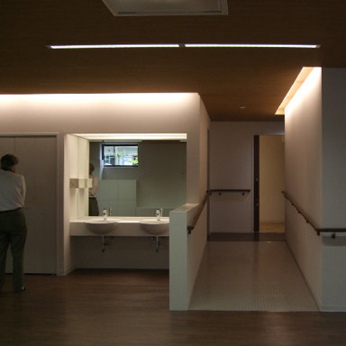 野澤寿江はアースサポート株式会社プロデュースによる高齢者介護施設デイサービスセンターの照明(建築:NAICA一級建築事務所)を2010年から手がけている。これまでに完成したのは、高野台、深大寺、上池袋、稲毛、船堀の5カ所。東浦和、府中で現在建設中。今後も継続的に設計に参画する予定。コストをかけずに雰囲気アップを図る照明計画は毎回好評。