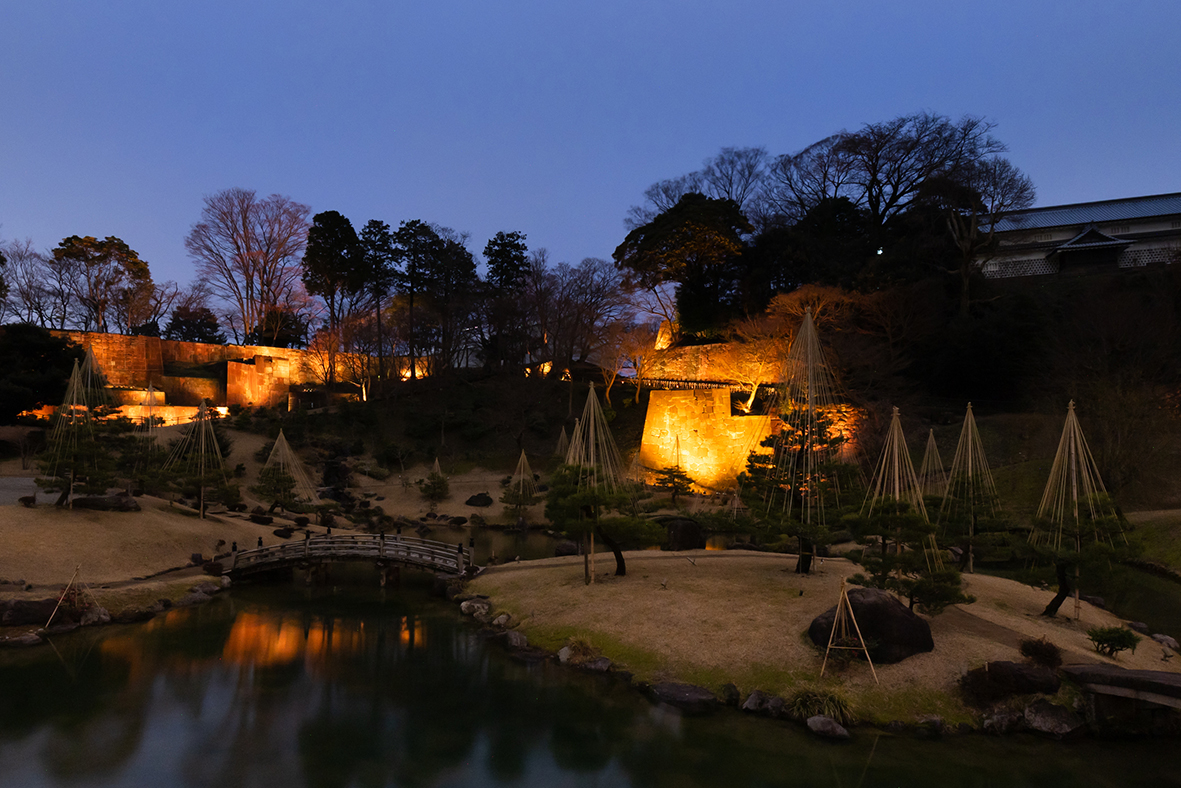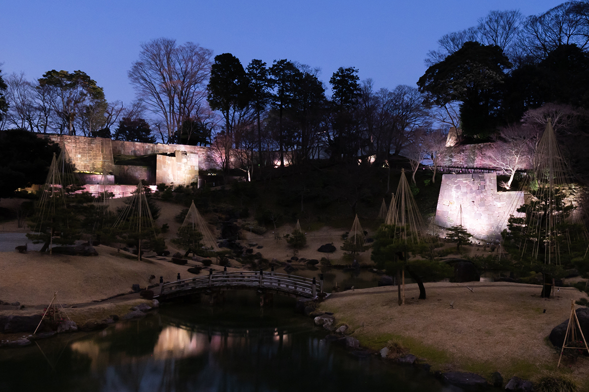 金沢城公園の中で石垣の博物館とも言われている、高低差22mの立体的な庭園照明のリニューアルが完了した。 2015年に国内初の音と光による無料の常設公共庭園としてオープンした。オリジナルに作曲した箏や尺八など和楽器の演奏に合わせた8つのプログラムがある。