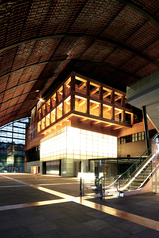 駅のコンコースのような味気ないアトリウムからメリハリのある劇的空間に大変身。コンサートやお芝居を楽しめる空間となりました。