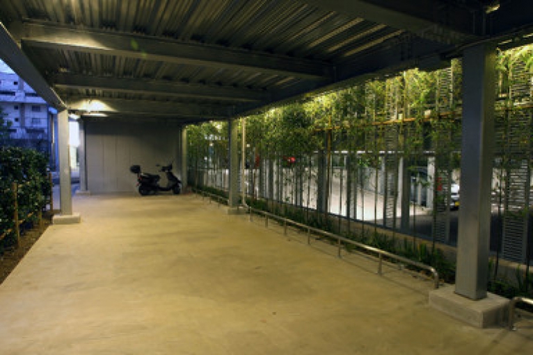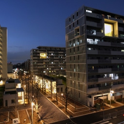 | 概要 | 1963年に建てられた団地の建て替え計画である。50年近い年月を経て、建物の老朽化と共に住民の高齢化が著しい。エネルギー効率が低く演色性の悪い廊下灯、青白く暗い街路灯、1ルクスに満たない自転車置き場や歩道もあり、高齢者にとっては夜間の外出が不安な暗がりもあった。 A1工区 2006年 |